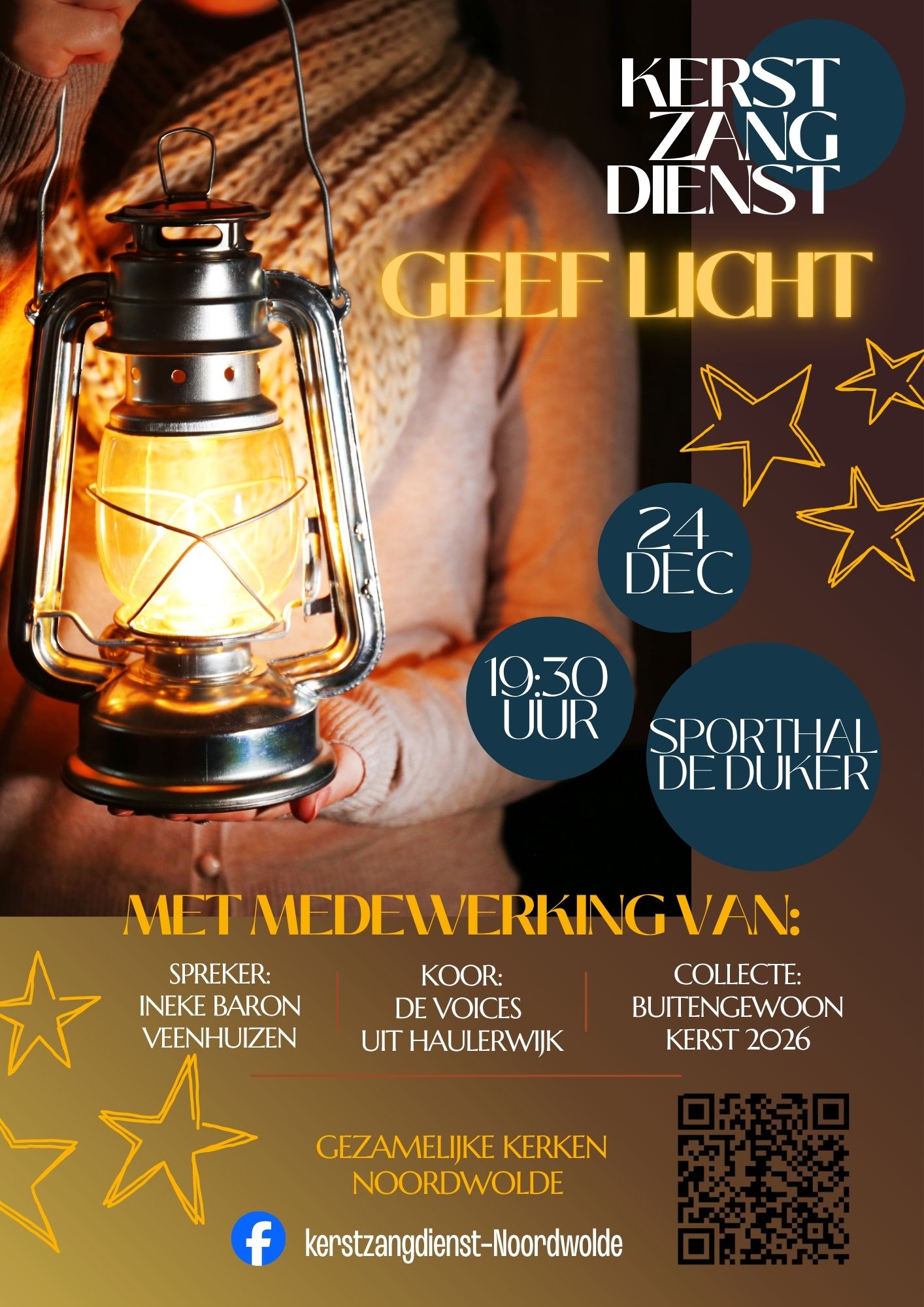 woensdag 24 december 2025 om 19.30 uur in De Duker te NoordwoldeKerstzangdienst in de DukerVoorganger(s): Ineke Baron, Veenhuizen